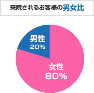 年齢層は10代~80代まで幅広くいらっしゃいますが、30代2割 40代2割 50代2割 その他の年代4割と30代前半~50代の方が特に多いです。